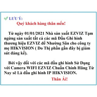 Quý khách hàng thân mến, Từ ngày 01/01/2021 Nhà sản xuất EZVIZ Tạm ngừng sản xuất tất cả các mã Đầu Ghi hình EZVIZ để Nhường sân cho công ty mẹ HIKVISION (Do Thị phần bị giảm sút đáng kể). Bởi vậy đối với các mã đầu ghi hình Sử Dụng đối với Camera WIFI EZVIZ Chuẩn Chính Hãng Từ Nay sẽ là đầu ghi hình IP HIKVISION.