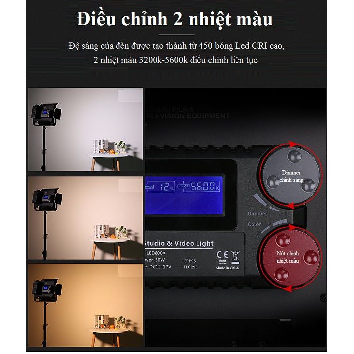 Giới thiệu Đèn LED quay phim 80W LED800X Lishuai