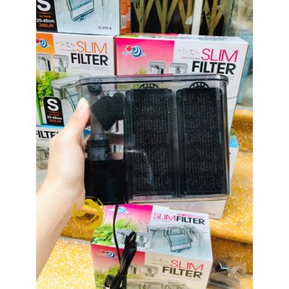 Lọc thác Slim Filter - Aqua world trang bị máy bơm tích hợp bên trong lọc. Tăng tính thẩm mỹ, xử lý nước hiệu quả không ảnh hưởng không gian bể. Hệ thống lọc đã đi các miếng lọc. Miếng lọc thác Slim Filter được thiết kế dạng bông ngăn chạn bụi bẩn, chất dơ, và phía bên trong là các vật liệu lọc than hoạt tính.