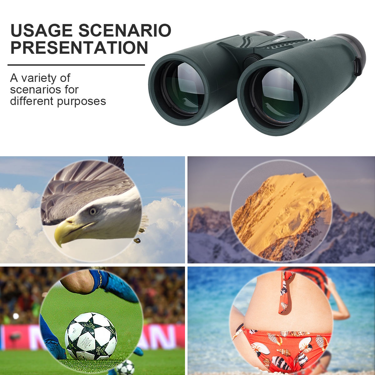 Ống nhòm siêu nét gấp gọn Terino BR-1242HD (12x42mm, lăng kính BAK4, chống nước, màu xanh lá) dùng cho tham quan, ngắm cảnh) - Hàng chính hãng